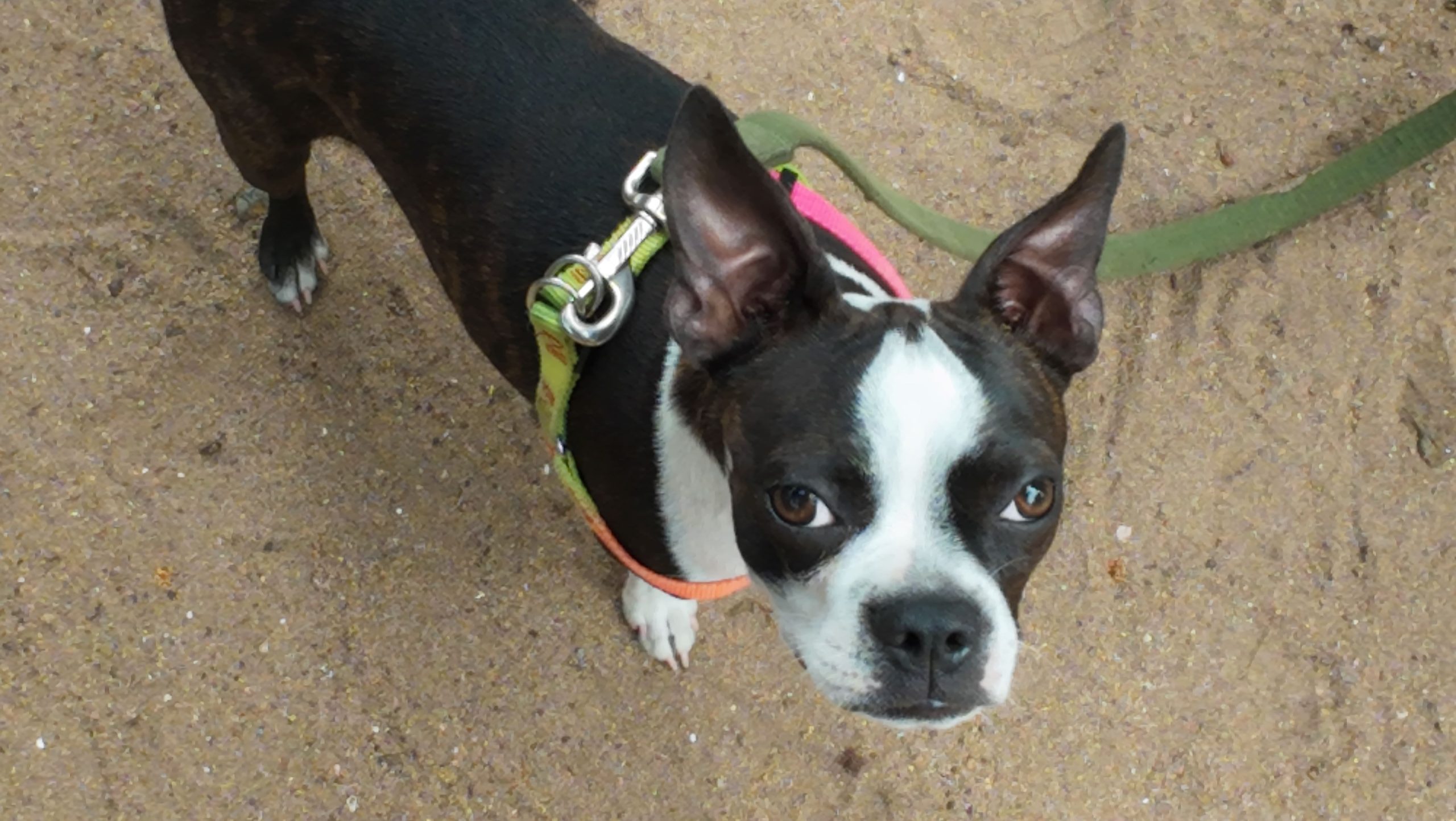 I am a deaf Boston Terrier that accompanies my humans on their adventures